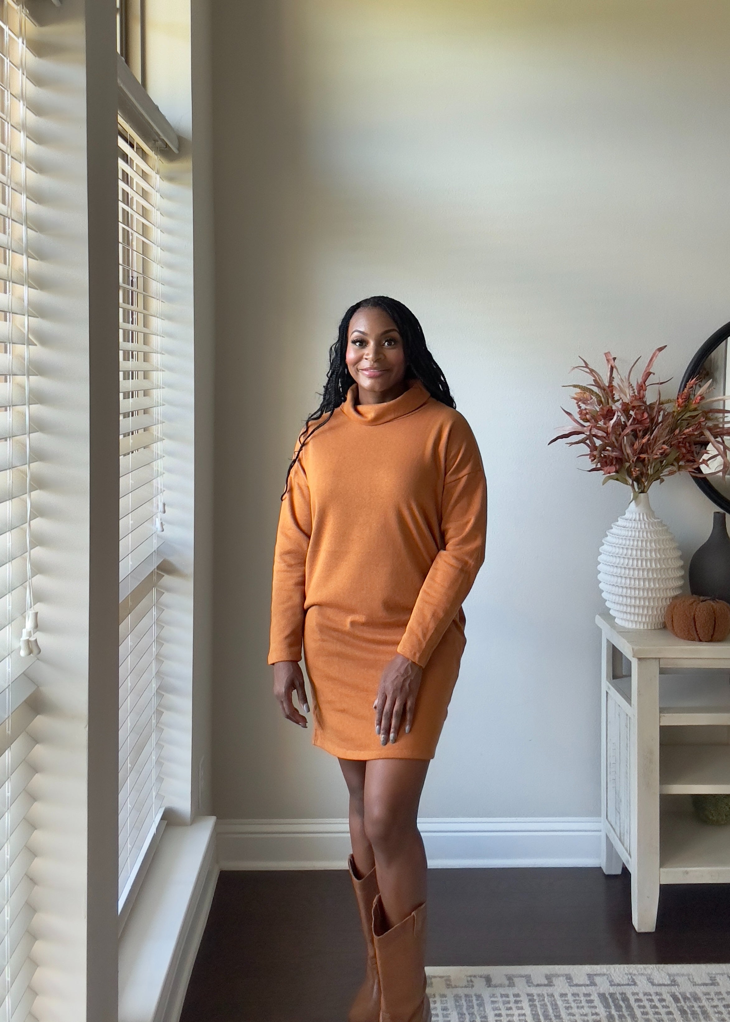 The Sloane Dress is the perfect combination of style and comfort with its cowl neck, long sleeves, and tunic style. Made from a blend of 65% cotton and 35% polyester, this mini dress also features convenient pockets for added functionality. Elevate your wardrobe with this must-have piece.