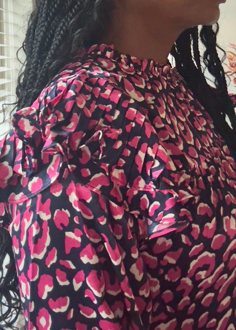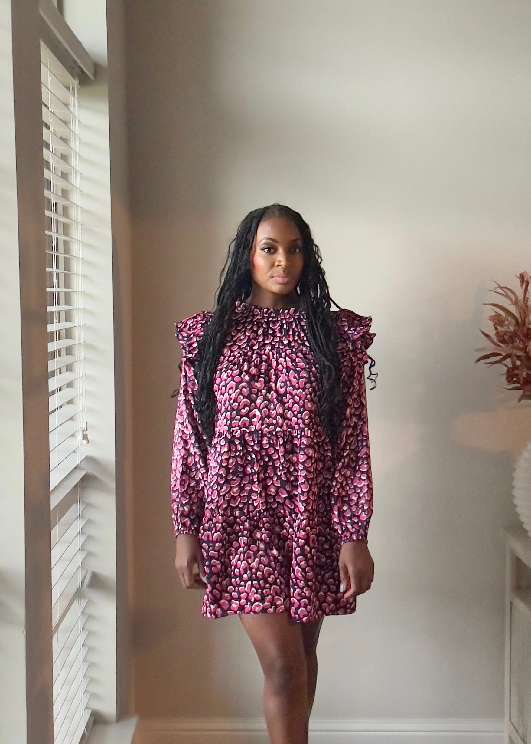 Experience elegance and charm with The Subtle Flirt Dress. Made from satin print fabric, this dress features a frill mock neckline and long bubble sleeves for a feminine touch. The tiered design adds texture and dimension, while the unlined and non-sheer construction ensures a comfortable and stylish fit. Perfect for any occasion.