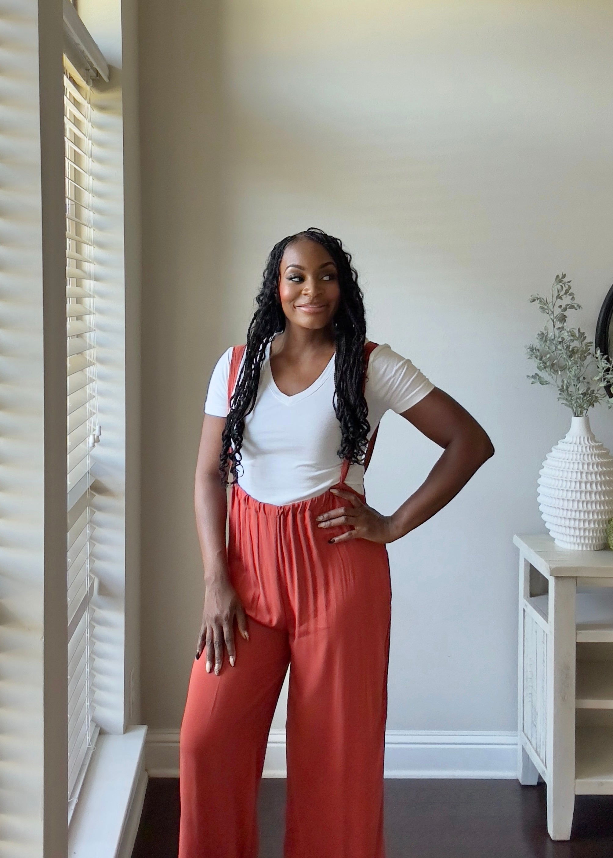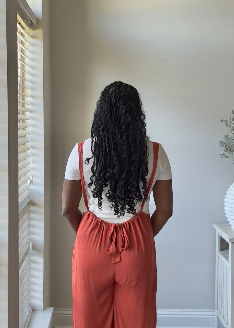 Effortlessly chic and functional, The Tied and True Suspender Jumpsuit features a woven construction with a trendy suspender style and convenient pockets. The adjustable straps and tie back ensure a perfect fit every time. Elevate your wardrobe with this must-have piece.