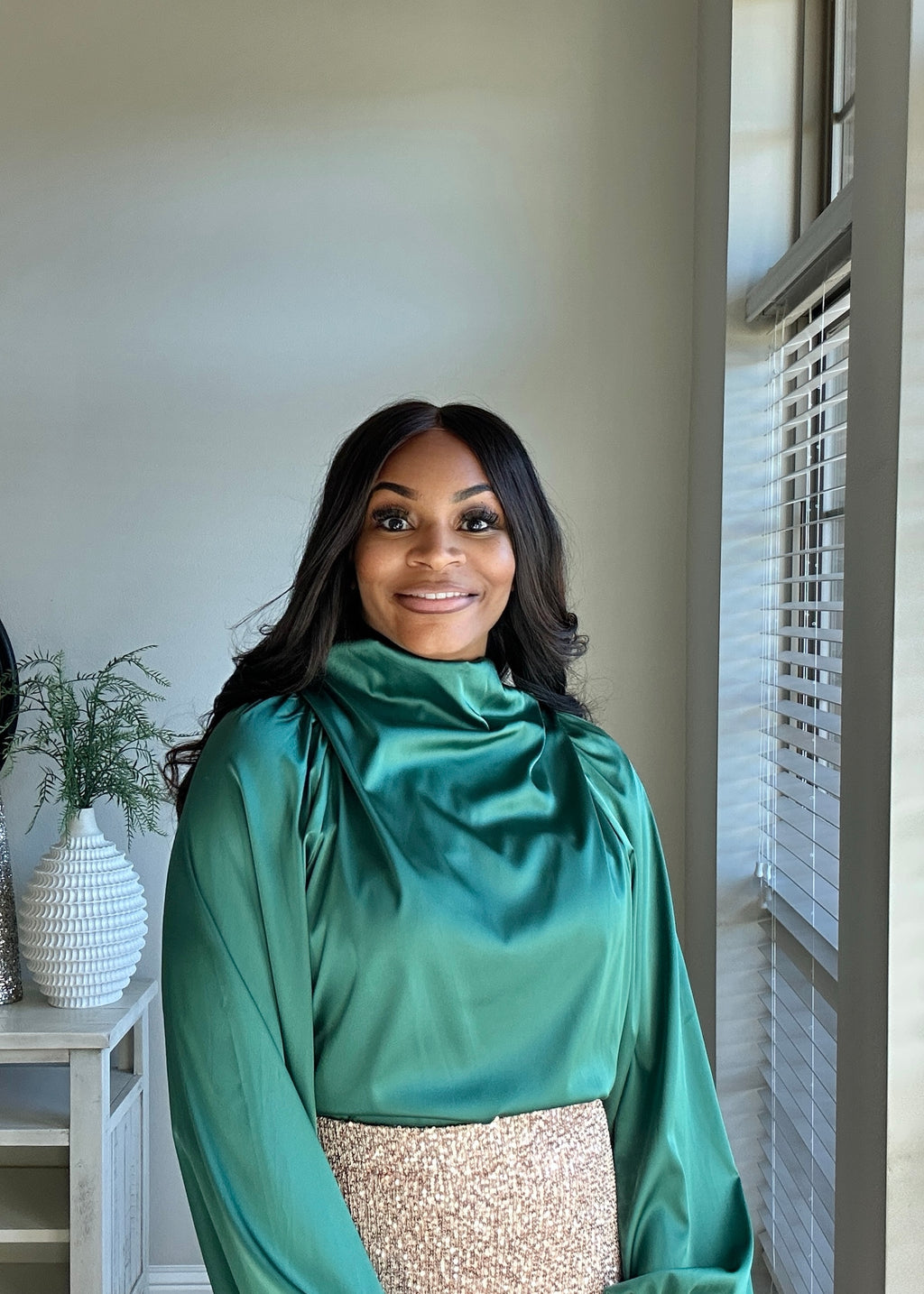 The Mistletoe Satin Cowl Blouse