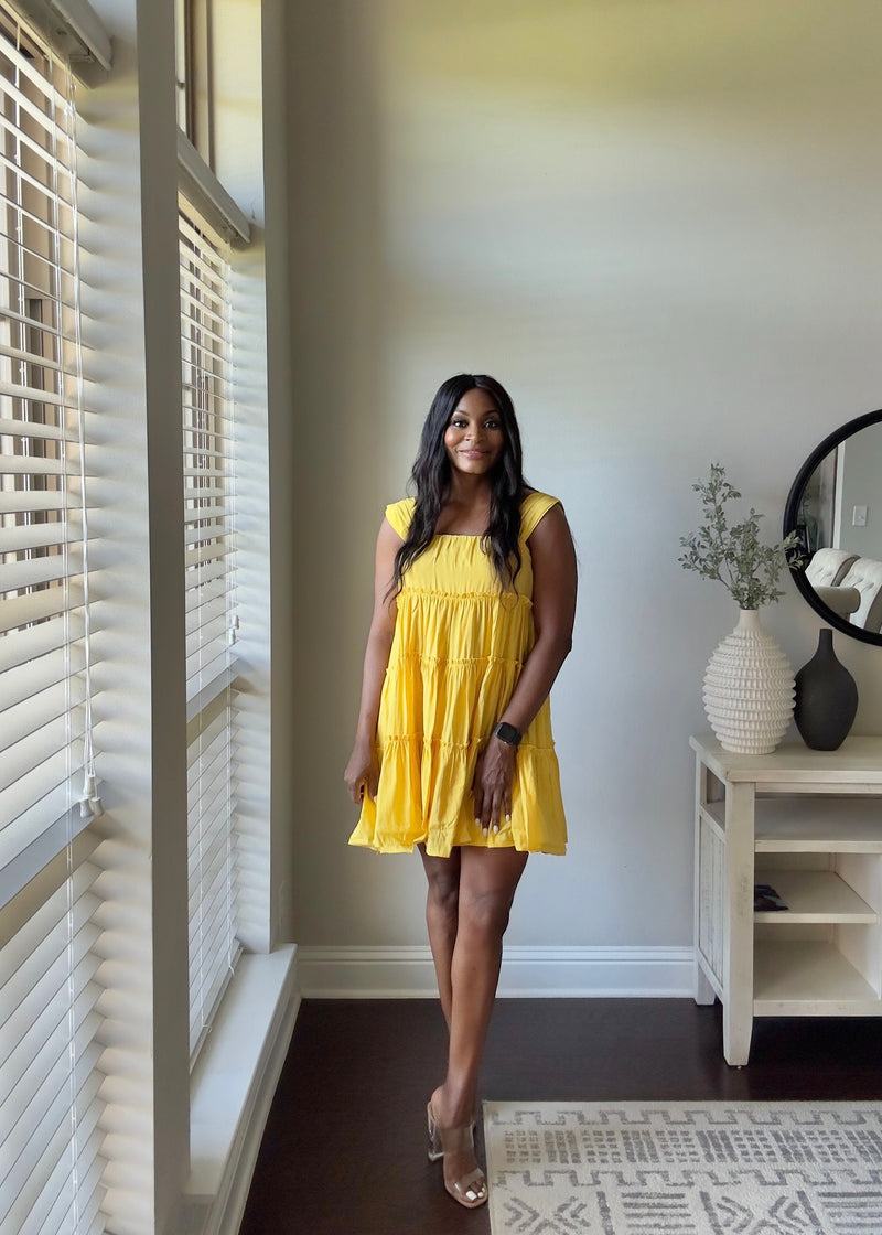 Indulge in the sophisticated elegance of The Wendy Dress. This stunning mini dress features a solid square neck and wide pleated straps, accentuating your silhouette with a touch of luxury. Ruffled tiers and a lightweight, non-sheer woven fabric add a subtle sense of movement, making this dress perfect for any occasion. Stay comfortably stylish with its lined design.